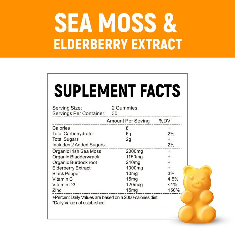 Gummies Εκχυλίσματος Sea Moss & Elderberry Extract Υποστηρίζουν το Ανοσοποιητικό Σύστημα