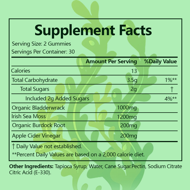Ιρλανδικό Sea Moss, Οργανικό Bladderwrack, Οργανική Ρίζα Burdock, Μηλόξυδο