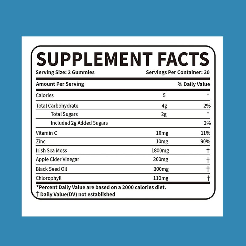 Ιρλανδικό Sea Moss, Μηλόξυδο, Ψευδάργυρος, Βιταμίνη C, Χλωροφύλλη, Έλαιο Μαύρου Σπόρου