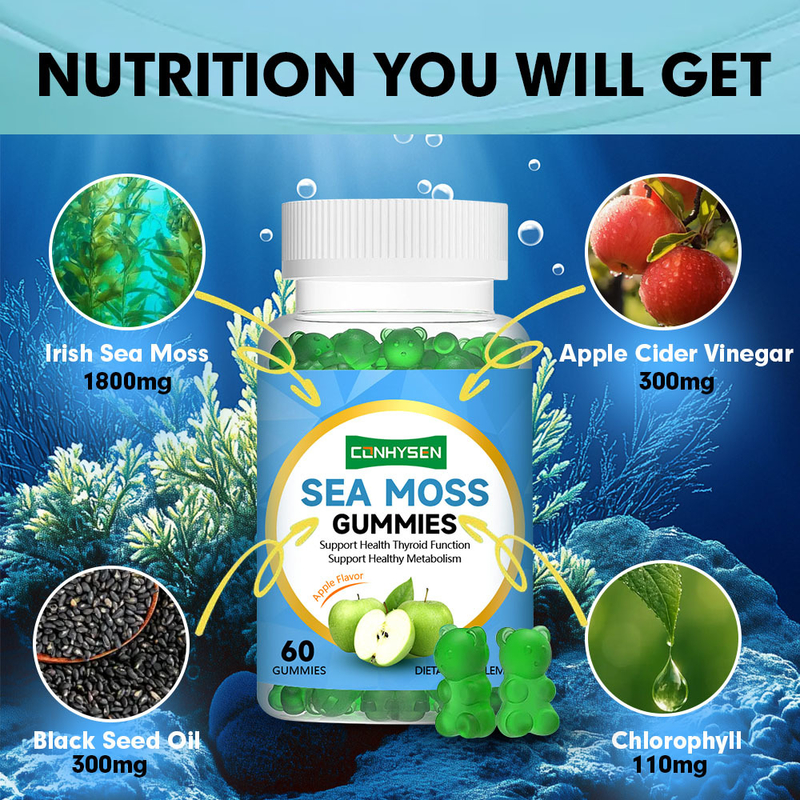 Χονδρική Πώληση Προσαρμοσμένων Gummies Sea Moss Apple Taste Υποστηρίζουν Υγιή Μεταβολισμό