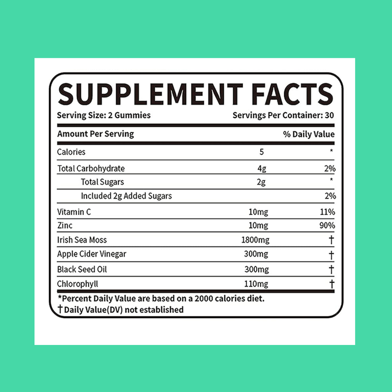 Ιρλανδικό Sea Moss, Μηλόξυδο, Ψευδάργυρος, Βιταμίνη C, Χλωροφύλλη, Έλαιο Μαύρου Σπόρου