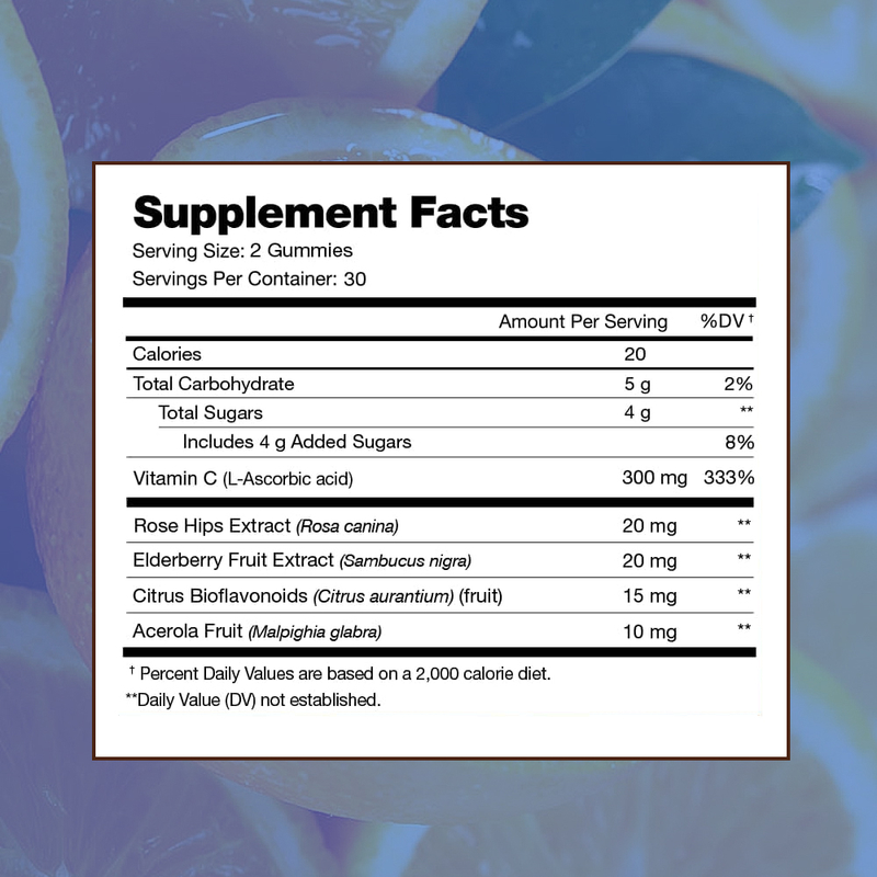 Βιταμίνη C, Εκχύλισμα Τριαντάφυλλου, Εκχύλισμα Φρούτου Σαμπούκου, Εσπεριδοειδή Βιοφλαβονοειδή, Φρούτο Acerola