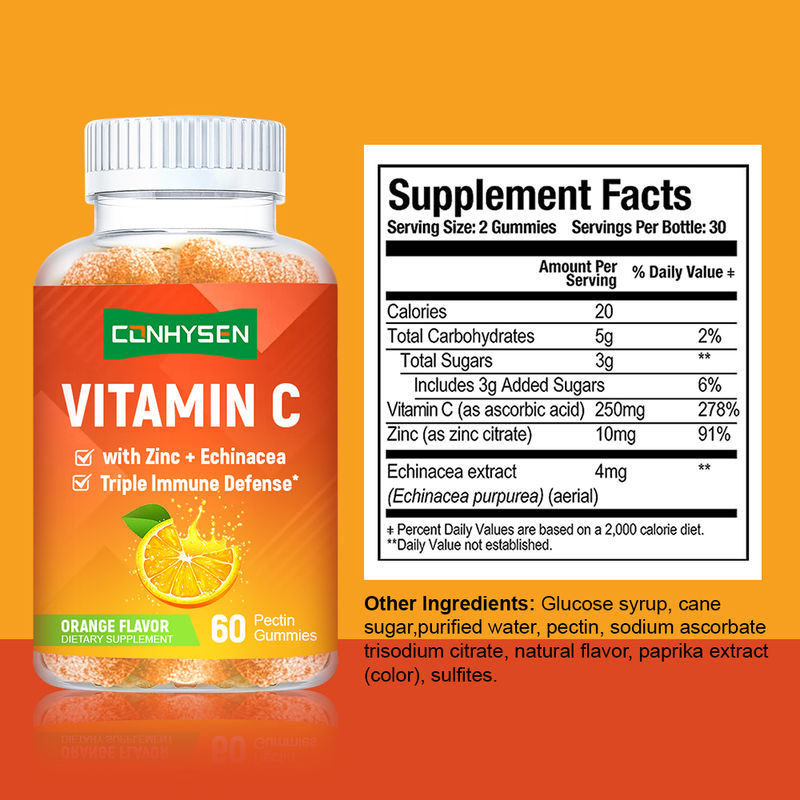 Ζελεδάκια Βιταμίνης C με Ψευδάργυρο OEM/ODM Custom Βελτιώνουν τα Επίπεδα Ενέργειας