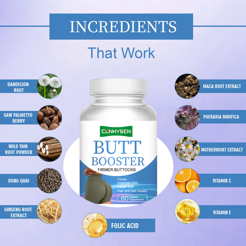 Το προϊόν Butt Booster Tablets τουΗ Guangdong Kangsheng Pharmaceutical Technology Co., Ltd.περιέχει άφθονα φυτικά οιστρογόνα και συστατικά κολλαγόνου.βοηθώντας να αυξηθεί φυσικά και με ασφάλεια ο όγκος των γλουτώνΑν επιμείνεις να το παίρνεις, οι γλουτοί σου θα γίνουν πιο χοντροί και στρογγυλοί, με πιο ελκυστικές καμπύλες.