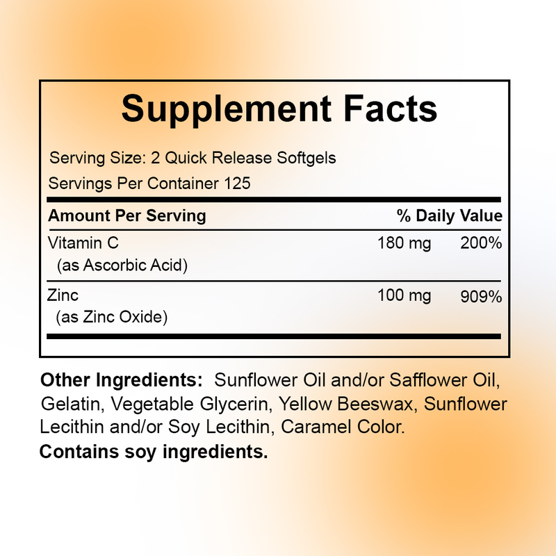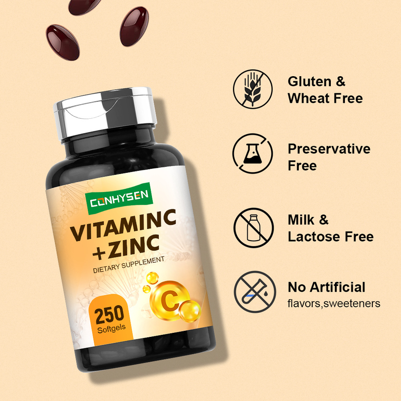 Βιταμίνη C Softgels με ψευδάργυρο Wholesale Price Αντιοξειδωτικό Υποστήριξη Custom