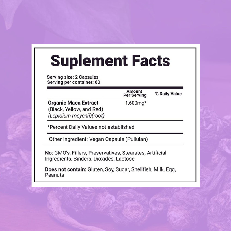 Οι κάψουλες Maca που παράγονται από την Τα Πλεονεκτήματά μας: εξάγονται από καθαρή Maca που καλλιεργείται στο περουβιανό οροπέδιο. Είναι πλούσιες σε φυσικά ενεργά συστατικά, macaene και macaamides, τα οποία μπορούν να ενισχύσουν σημαντικά την απόδοση της μιτοχονδριακής μετατροπής ενέργειας, βελτιώνοντας έτσι την αντοχή στην άσκηση και επιταχύνοντας την αποκατάσταση των μυών. Η ειδική προσθήκη του συμπλέγματος βιταμινών Β λειτουργεί συνεργιστικά, ανακουφίζοντας αποτελεσματικά την κόπωση μετά την άσκηση και βοηθώντας τους λάτρεις της φυσικής κατάστασης να επιτύχουν υψηλότερες εντάσεις προπόνησης.