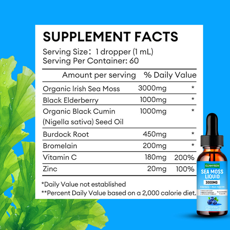 Υποστήριξη Κατασκευαστή Περιποίησης Δέρματος και Μαλλιών Factory 3000mg Sea Moss Liquid Drops