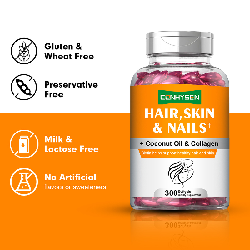 Hair Skin & Nails Softgels launched by Guangdong Kangsheng Pharmaceutical Technology Co., Ltd. uses scientific formulas and selects a variety of natural nutrients to provide comprehensive nourishment for hair, skin and nails. Each soft capsule is rich in core ingredients such as biotin, vitamin E, and vitamin C. These nutrients work together to help maintain healthy hair and shine, promote skin elasticity and shine, and enhance nail strength and toughness. Hair Skin & Nails Softgels are free of artificial colors and preservatives and are ideal for people seeking health and beauty.