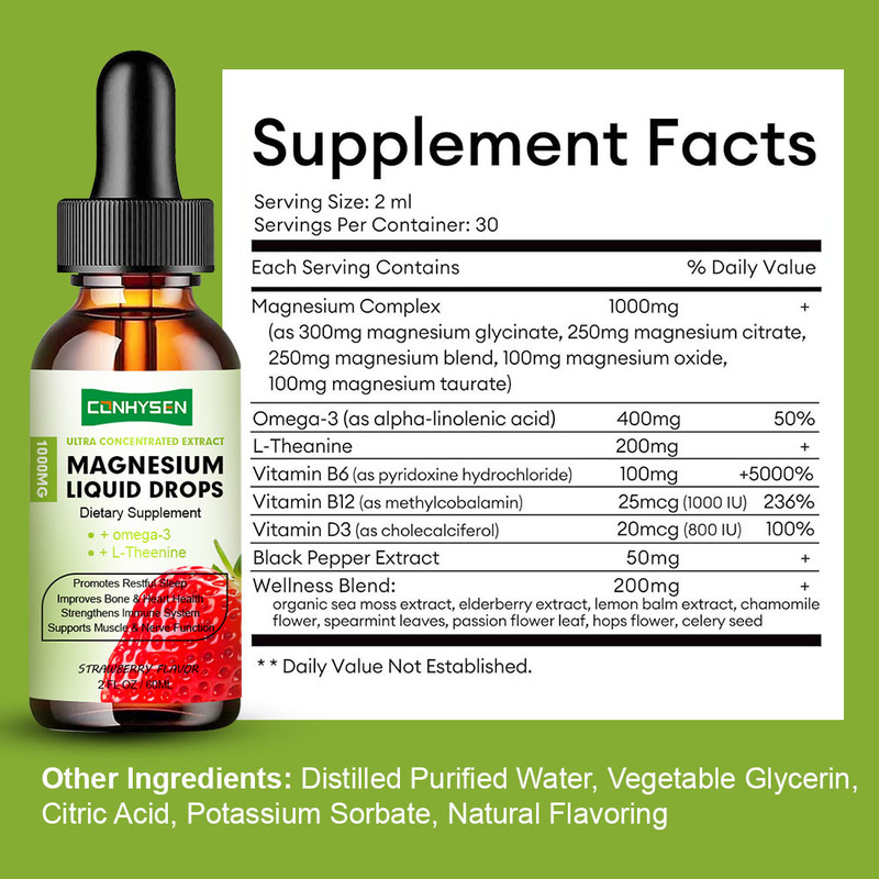 Guangdong Kangsheng Pharmaceutical Technology Co., Ltd. introduces Magnesium Liquid Drops with Multi-Action Formula, a scientifically advanced dietary supplement that combines high-purity magnesium complex with synergistic nutrients including L-Theanine, Omega-3, and essential vitamins. Utilizing advanced liquid delivery technology, the company ensures optimal bioavailability and rapid absorption of active compounds. The 100% natural formulation is designed to support modern wellness needs through a comprehensive approach to physical and mental well-being. With regular use, this product helps replenish vital minerals often depleted by stress and modern lifestyles, promotes restful sleep, enhances cognitive function, supports musculoskeletal health, strengthens immune response, and contributes to maintaining cardiovascular vitality and nervous system balance.
