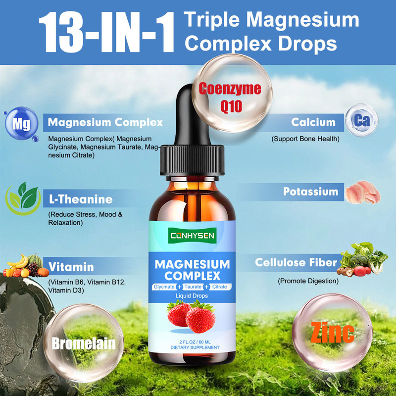 Τριπλή Σταγόνες Υγρού Συμπλέγματος Μαγνησίου Γλυκινικού Ύπνου Υποστήριξη Μυών Νεύρων Χονδρική Προσαρμοσμένη